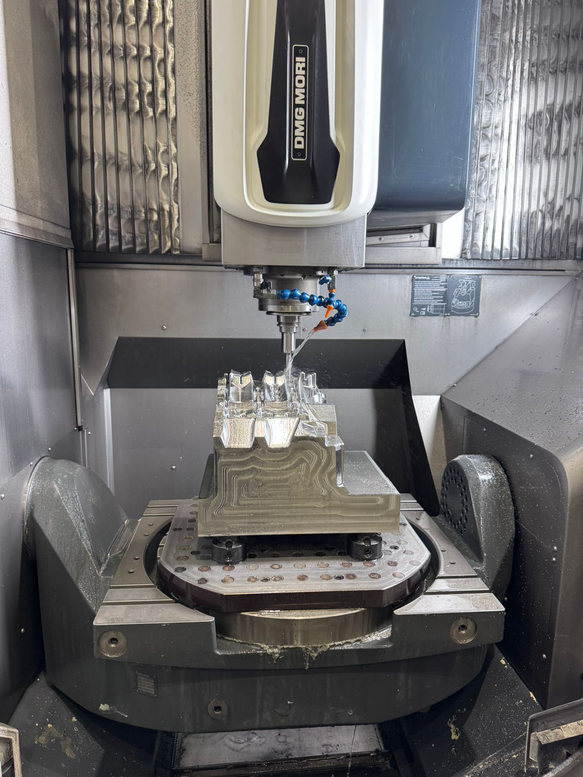 Usinagem de alta precisão em 5 eixos para peças complexas, permitindo operações completas em um único setup (fresamento, interpolações simultâneas e, opcionalmente, torneamento).