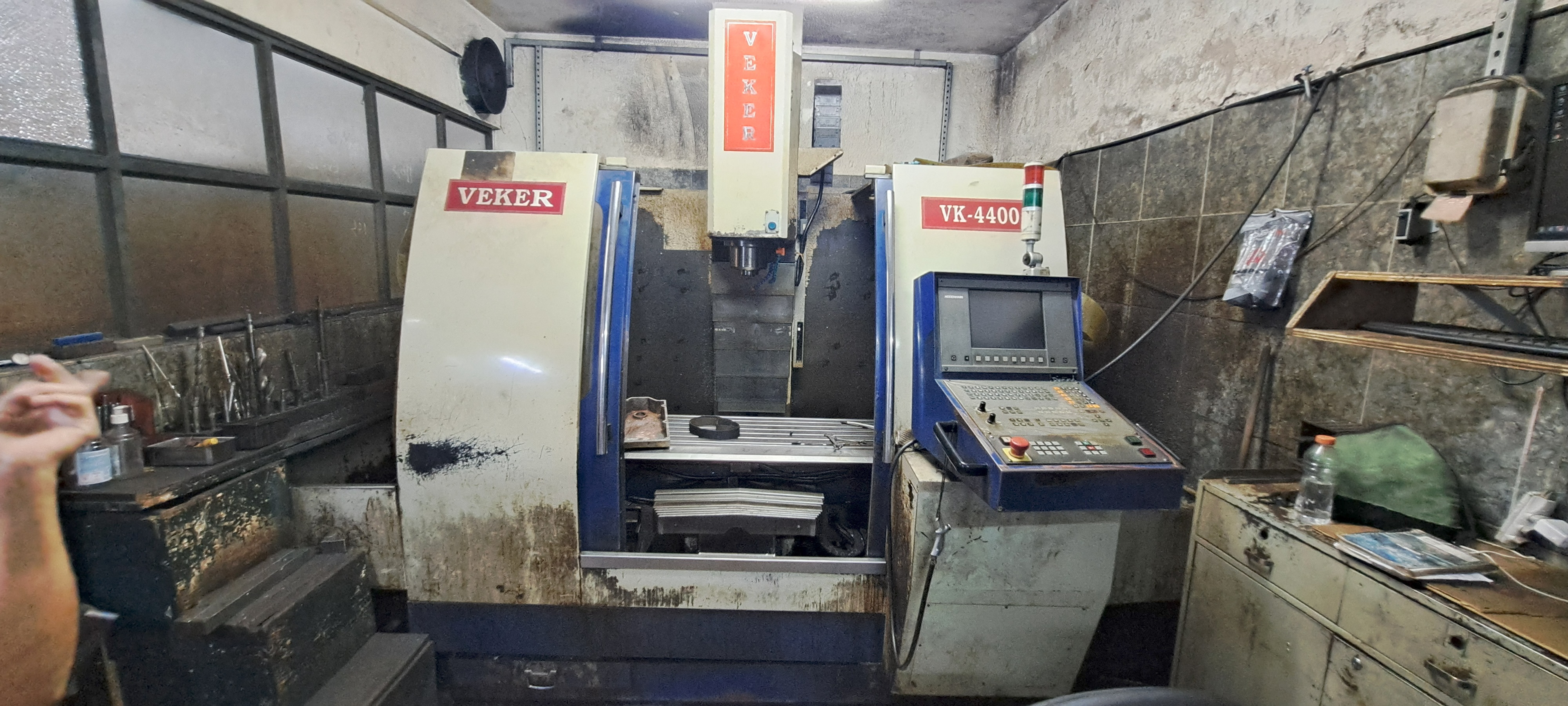Fresadora CNC vertical Veker VK-4400, equipada com comando Heidenhain, utilizada para usinagem de peças com alta precisão. Permite fresamento, furação e rosqueamento em aço, alumínio e outros materiais, sendo indicada para produção industrial, moldes, matrizes e peças seriadas. Robusta, versátil e confiável.