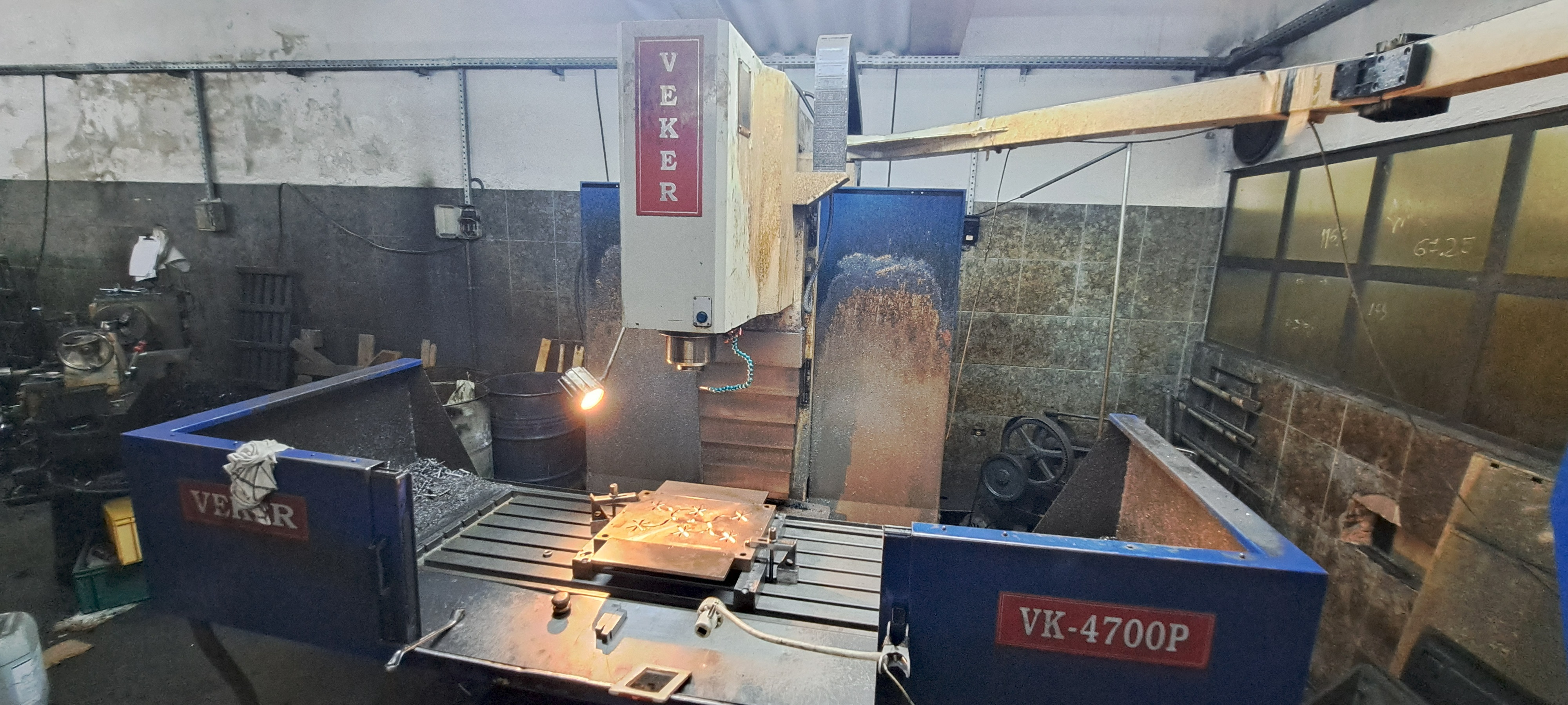 Fresadora CNC vertical Veker VK-4700, equipada com comando Heidenhain, utilizada para usinagem de peças com alta precisão. Permite fresamento, furação e rosqueamento em aço, alumínio e outros materiais, sendo indicada para produção industrial, moldes, matrizes e peças seriadas. Robusta, versátil e confiável.
