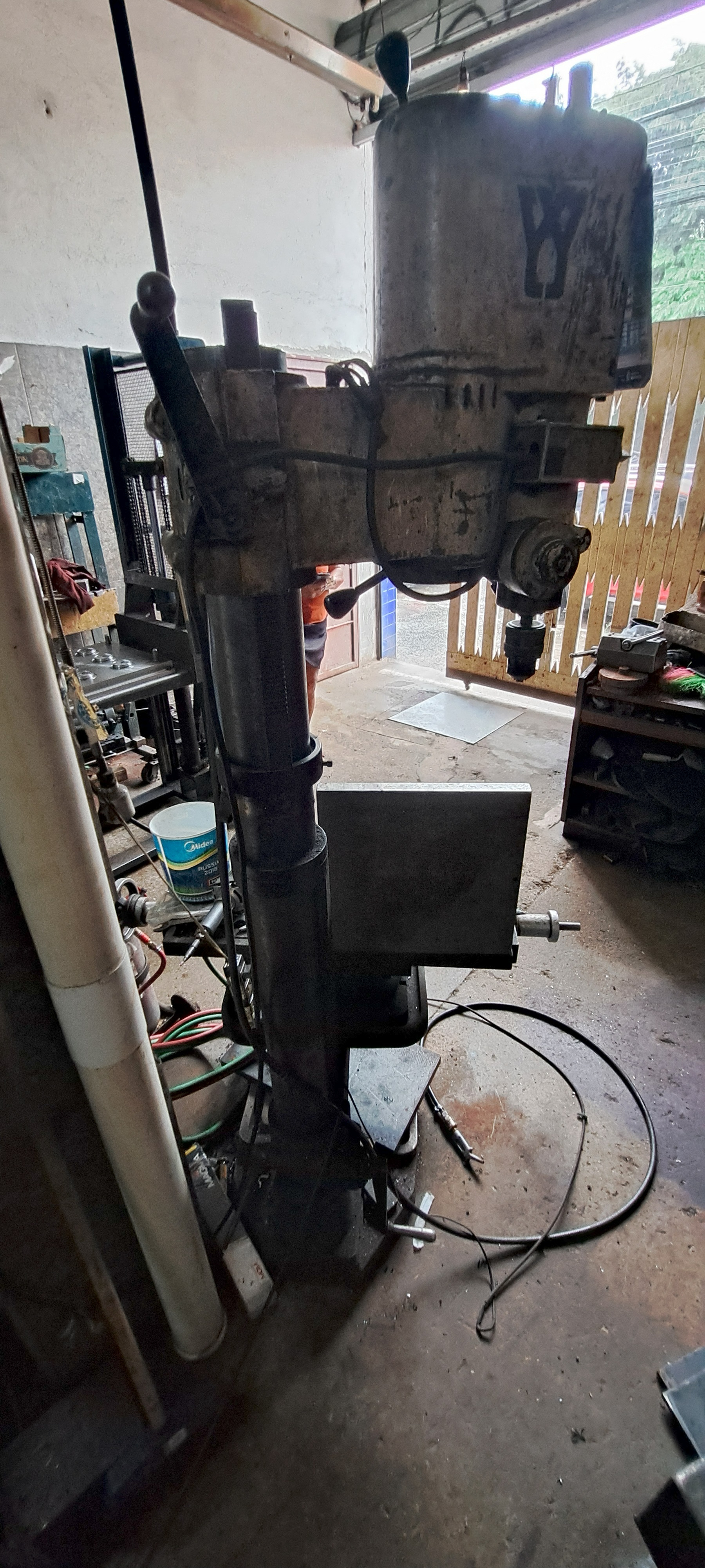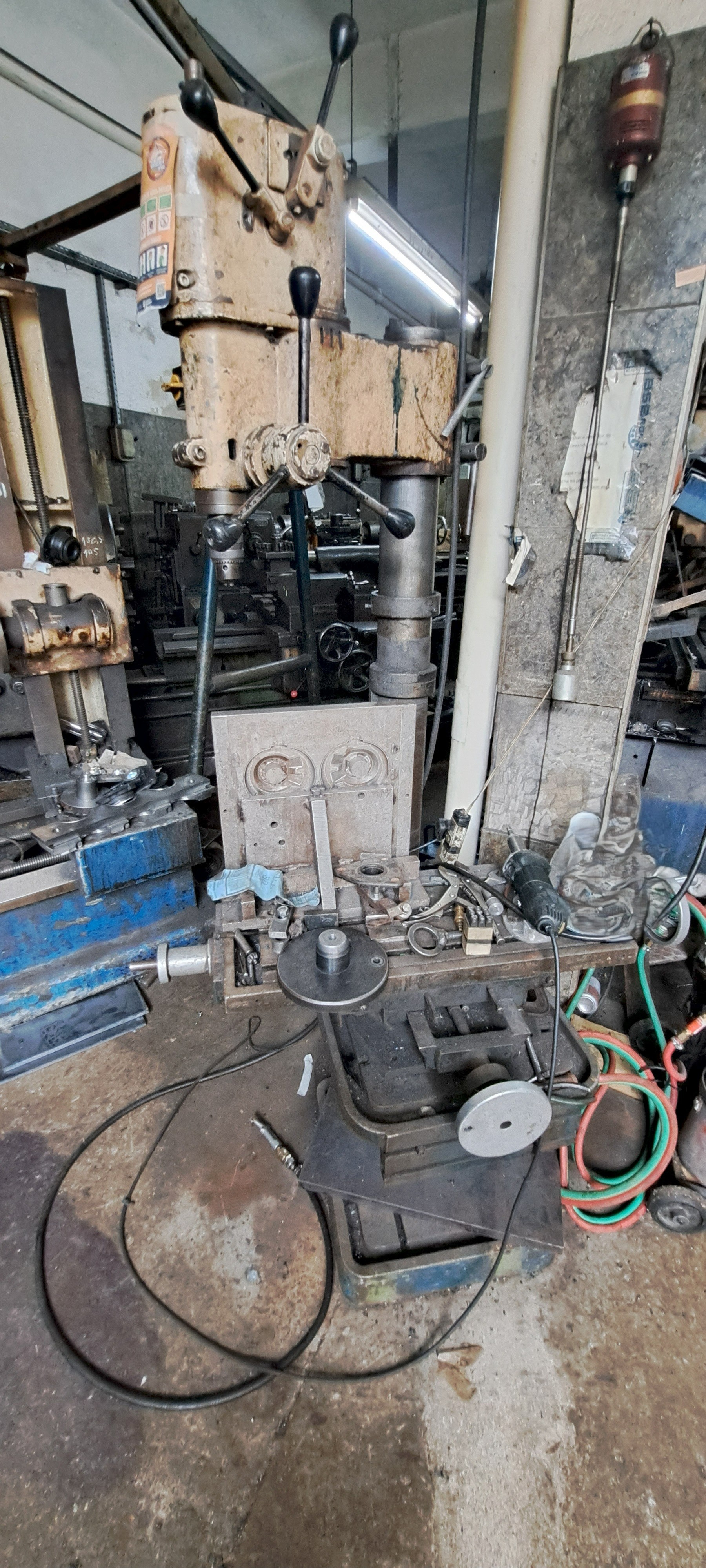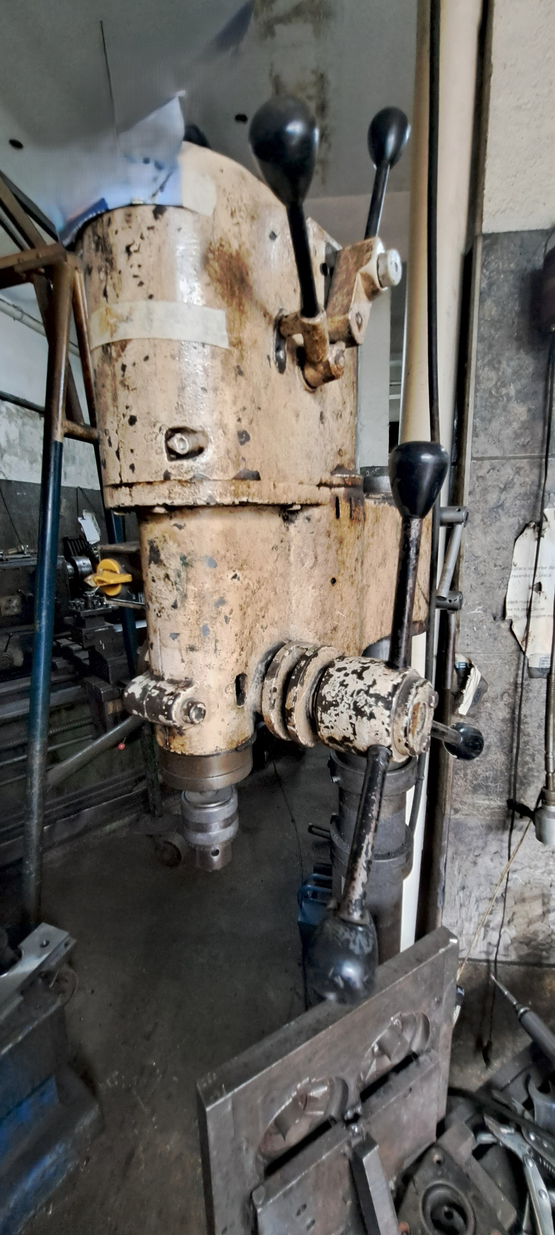 A Yadoya 38 é uma furadeira de coluna industrial robusta, construída em ferro fundido, projetada para trabalhos pesados de furação em metal. Possui avanço manual por alavancas, mesa ajustável e capacidade de furação de até 38 mm, sendo muito utilizada em oficinas mecânicas e setores de manutenção pela durabilidade e precisão.