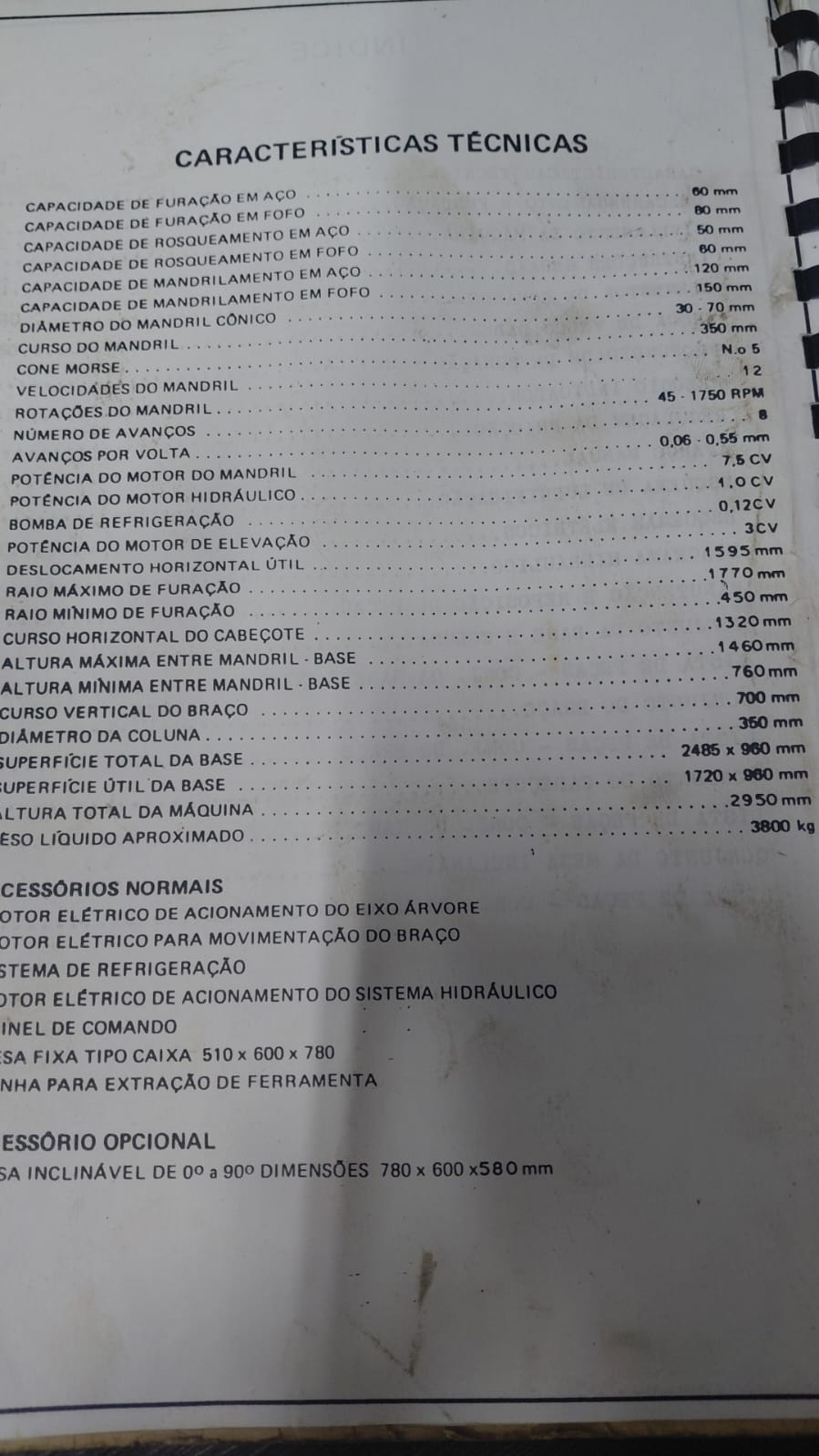 Peso da máquina: 3.800kg