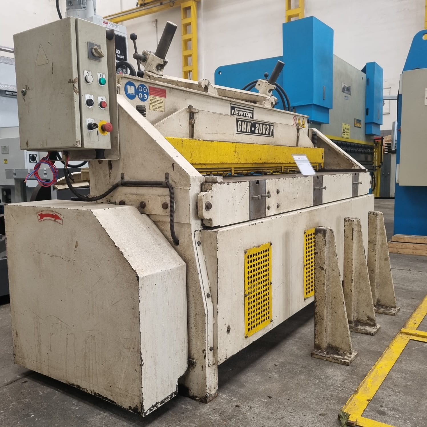Comprimento Máximo de Corte: 2050 mm (ou 2,05 metros). É o comprimento máximo da chapa que a guilhotina pode cortar.