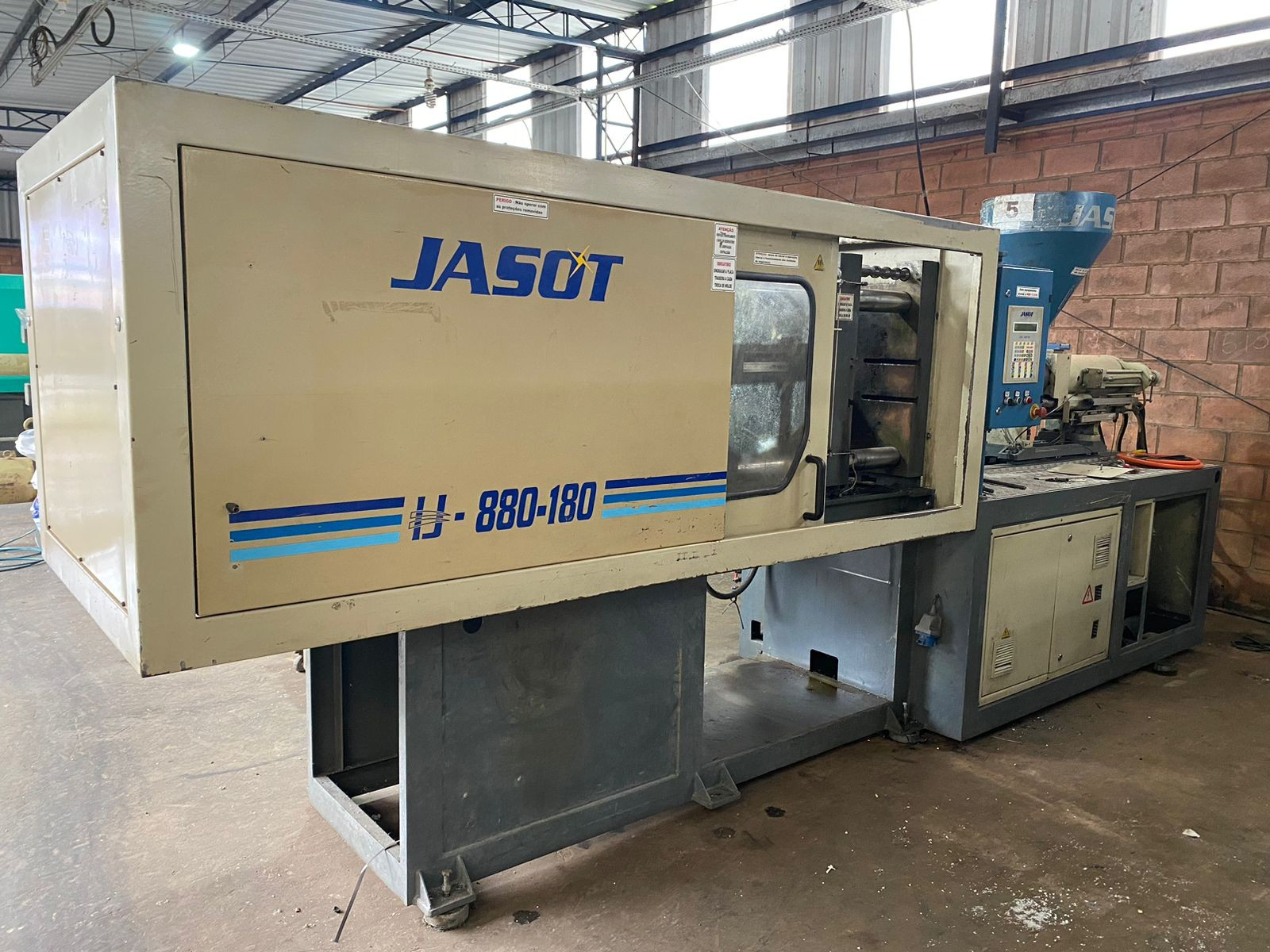 A injetora 880/180 da Jasot Indústria e Comércio de Máquinas e Equipamentos Ltda. é uma máquina industrial utilizada para fabricação de peças plásticas por meio do processo de injeção