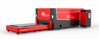 Máquina de corte a laser de fibra de média e alta potência com mesa de vaivém.