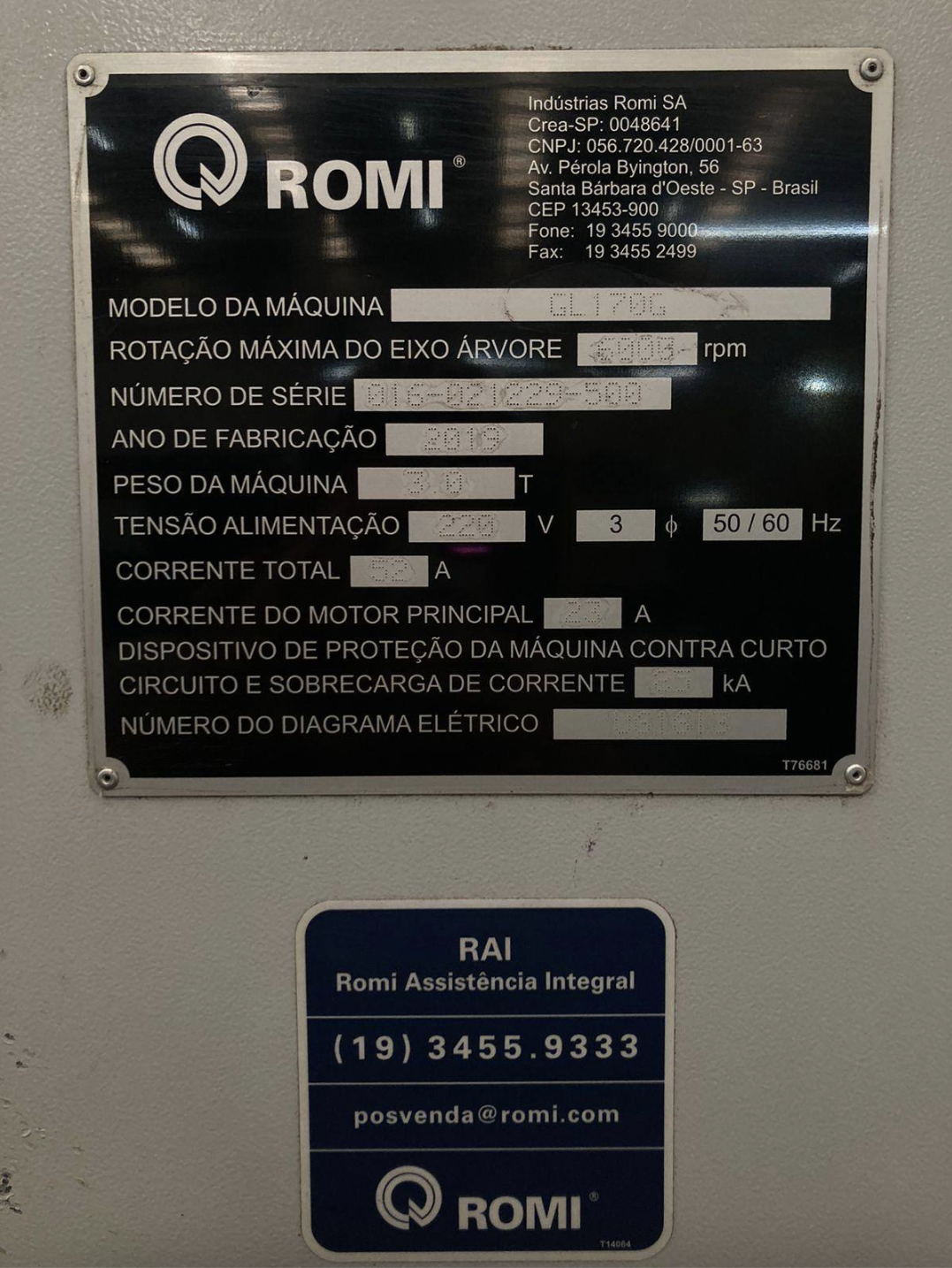 Peso da máquina: 3.000 Kgs