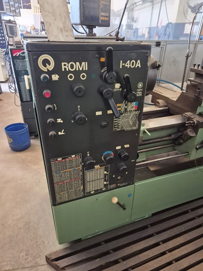 Torno mecânico ROMI modelo I40A, equipado com barramento de 1.800 mm e distância entre pontos de 1.000 mm. Possui placa de 12”, passagem sobre o carro de Ø 440 mm e passagem na placa de Ø 600 mm, permitindo usinagem de peças com diâmetros variados. Conta com passagem do eixo árvore de 50 mm e sistema de leitura digital nos dois eixos, garantindo maior precisão e controle durante as operações.