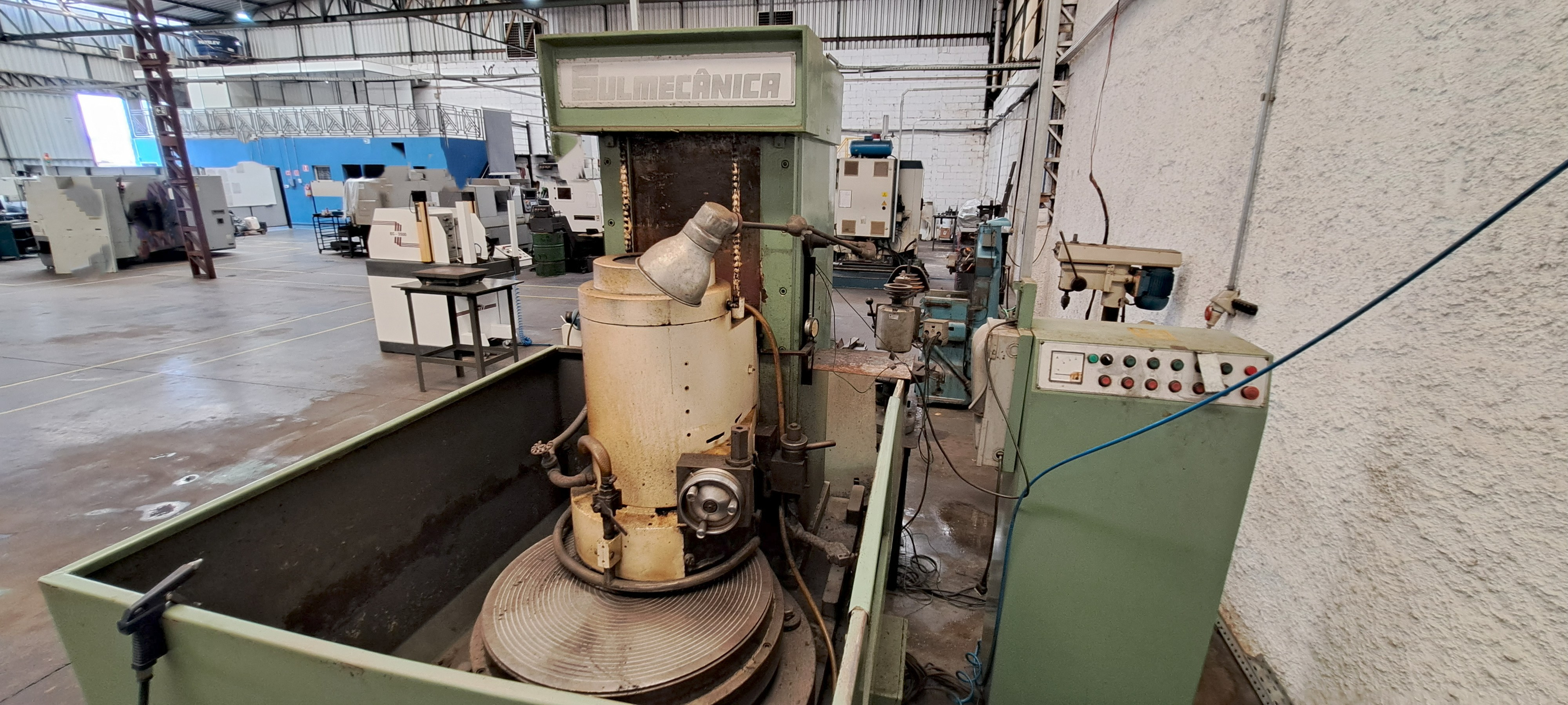 Retificadora plana, usada para acabar e nivelar superfícies metálicas (ferro fundido, aço, etc.).